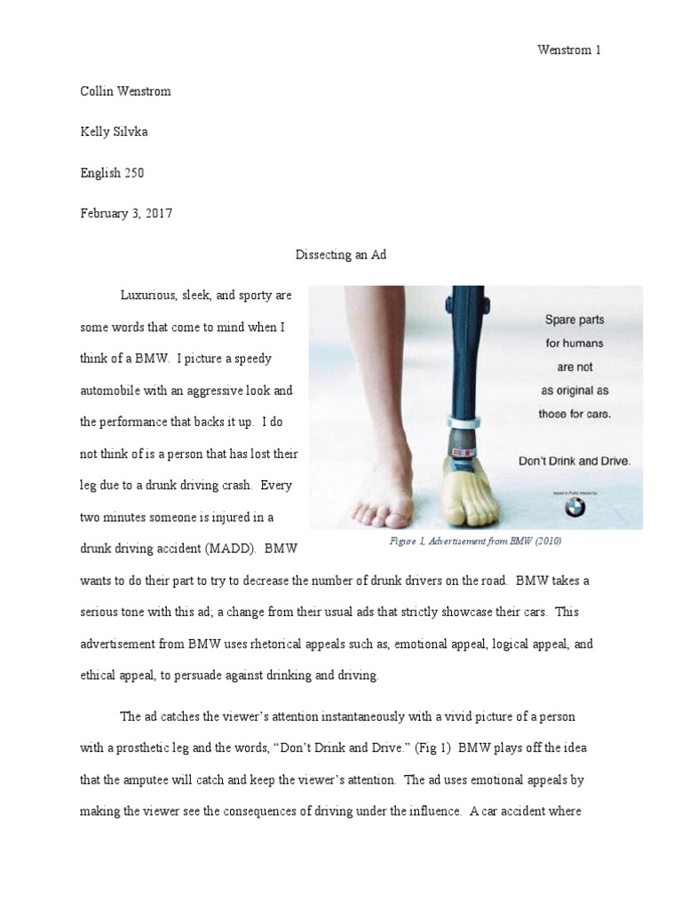 These kind of scare. Prepare for innovation at every turn as we unveil the future of the Ultimate Driving. The ad catches the viewers attention instantaneously with a vivid picture of a person with a prosthetic leg and the words Dont Drink and Drive Fig 1 BMW plays off the idea that the.